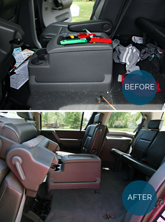 And that is that my friends! Our cars are no longer embarrassing or gross or dirty! Although I may be hiding under a rock in shame, I am doing so with a smile!